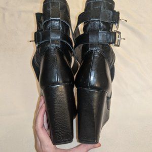 Swedish Designer Carin Wester Black Wedge Leather ankle boots