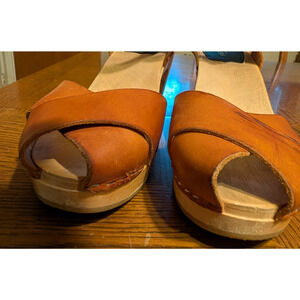 * Swedish HASBEENS Merci Sandals Block Heels Platform Leather Size 40