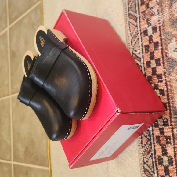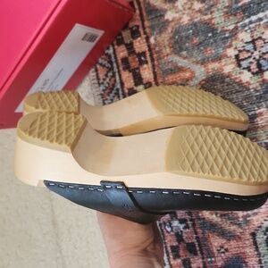 Classic black leather clogs. Comfortable wooden sole. Timeless design.