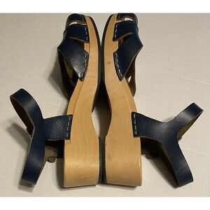 Comfy and stylish low Swedish Hasbeen Navy blue clogs/sandals size 39 euro, 8.5/9 US sold by Anthropologie. These clogs are in gently worn condition. A few minimal scuffs here and there, but in overall great clean shape. Please view the photos for details of the condition.