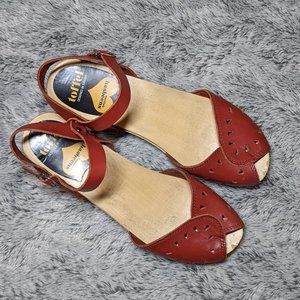 Swedish Hasbeens Red Wooden Open Toe Sandals Clogs Size 38 / 8