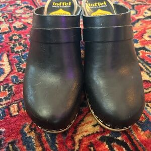 Swedish Hasbeens "Slip in Classic" Black Clogs