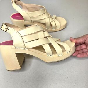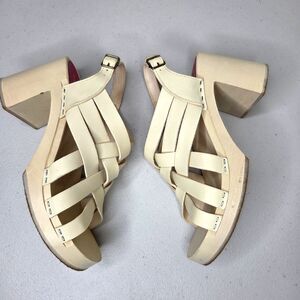 Swedish Hasbeens ViVi Off-White Leather Heel Sandals Size 39 Euro Summer Scandi