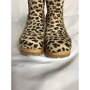 Swedish Hasbeens Women Leopard print Ankle Block Heel Clogs Sz 37/7US NWOB