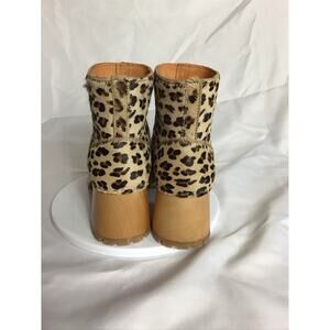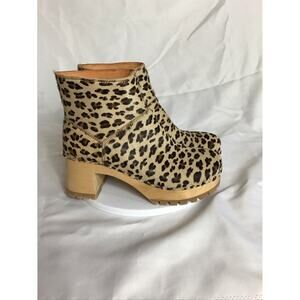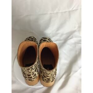 Swedish Hasbeens Women Leopard print Ankle Block Heel Clogs Sz 37/7US NWOB