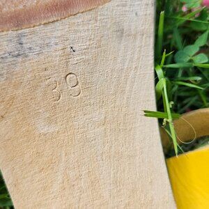 These Swedish designer wooden-clog-bottomed premium leather sandals in Canary Yellow were $300 off the rack. They've been worn a total of about 6 times and are in superb condition. There is a slight dirt/wear stain on the wooden heel, which is 3", and can be cleaned. Bought these when I was in a different phase of life, but they are SO CUTE - I just don't have places to wear them these days.
