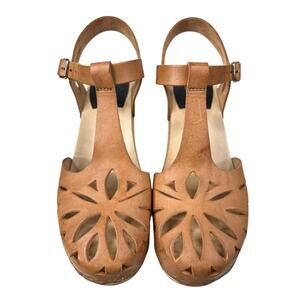Swedish Hasbeens Women’s Lacy Brown Leather Wooden Sandals Size 39 US
