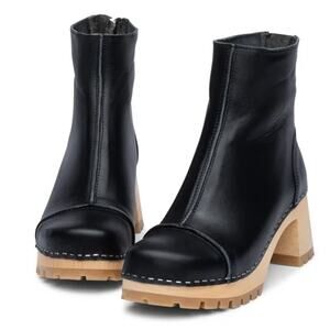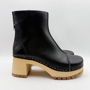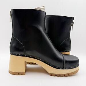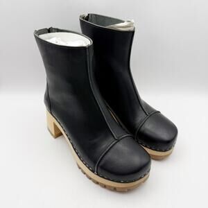Swedish Hasbeens Womens Stitchy Boot EU 38 US 8 Black Leather NIB