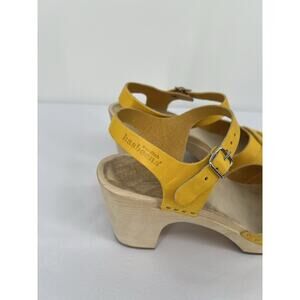 Swedish Hasbeens Yellow Wooden Clog Sandal Peep Toe Size 41 US 11
