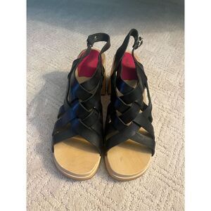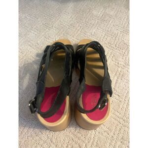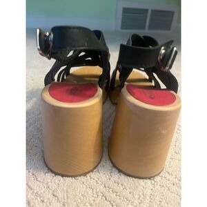 Excellent condition. Like new. No box. Size 39 (8.5). The Black Vivi sandal is made of a higher chunky wooden heel with an open toe. The handwork of Swedish Hasbeens makes each sandal a work of art, and Vivi’s uniqueness is enhanced with its hand braided Italian leather in a rich bordeaux color.