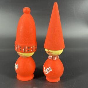 Swedish SVENSK SLOJD Figurine Wood Hand Painted Elves Tall Hat Santa Tomtar Set