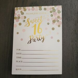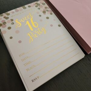Sweet 16 birthday party invitations pink and gold (18 invitations/19 envelopes)