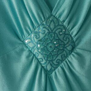 50/50 Poly/Rayon Women's V-neckTank with sequined and ruched detailing. Made in USA. Great condition!