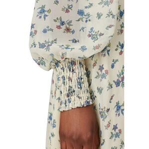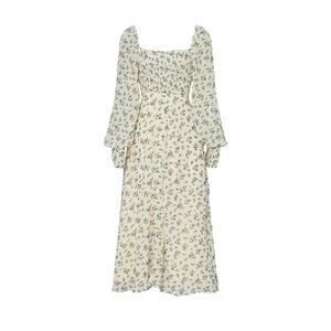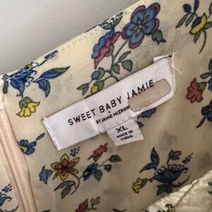 Sweet Baby Jamie Floral Smocked Dress Cream Square Neck Zip Long Sleeve Sz XL