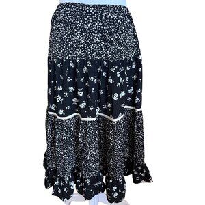 Sweet Baby Jamie Mizrahi Medium Black White Floral Tiered Cottage Midi Skirt