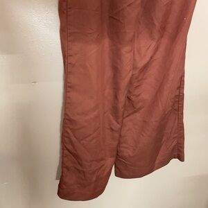 Brown twill (68% tencel, 32% polyester). Trousers. Center Front Zipper. Not lined. 41.5" from waist to hemline. 30.25" inseam. Imported.An attached belt accentuates the flattering waist on these effortlessly polished wide-leg pleated pants by Sweet Baby Jamie.