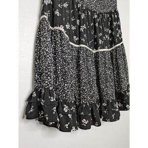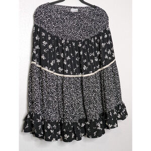 Sweet Baby Jamie Tiered Black Floral Midi Skirt Size XS