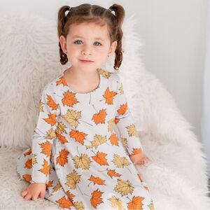 Sweet Bamboo | Swirly Girl Dress in Grey Leaves Fall | 8
