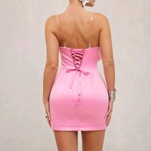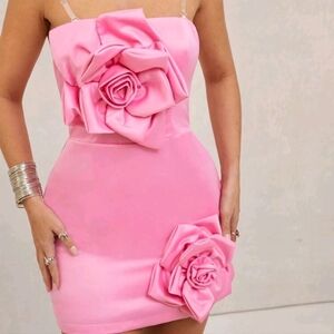 Sweet Beautiful Outfit Rose Flower Satin Finish 3D Floral Bustier Mini Dress