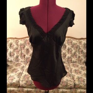 Sweet Black Blouse Ruffled Sleeves 100% Polyester