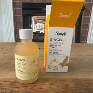 Sweet Chef Ginger + Vitamin C Bright Spot Tonic is a skincare product designed to brighten the skin and reduce the appearance of dark spots. It is a toner that can be used after cleansing and before applying serum and moisturizer.