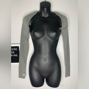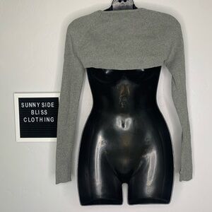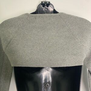 This is a thick gray ribbed long sleeve cardigan top in a size medium. It’s in perfect like new condition no stains or flaws.