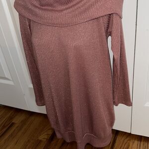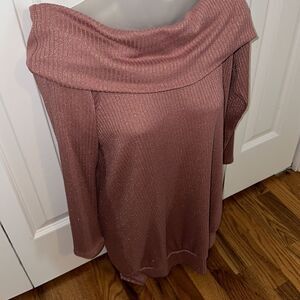 Sweet Claire Iridescent Pink Mauve Gold Off Shoulder Sweater Shirt Top Blouse M
