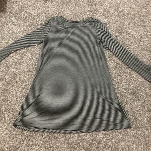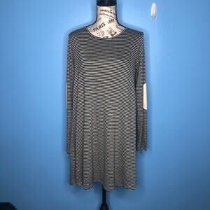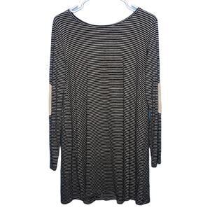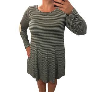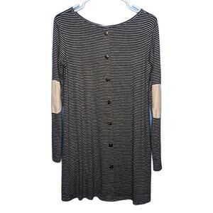 Sweet Claire MEDIUM Striped Elbow Patch Back Button Long Sleeve T-shirt Dress