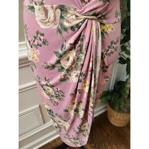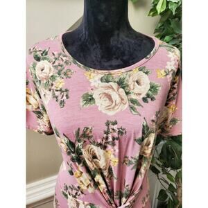 Sweet Claire Women's Pink Polyester Round Neck Half Sleeve Knee Length Dress L