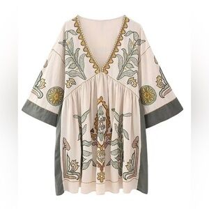 Sweet Clarise Embroidered Loose Fit Floral Mini Dress