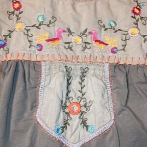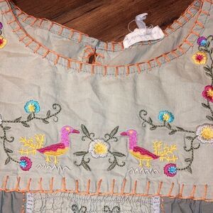 Sweet Color Size Small Duck Bird Floral Embroidered Cap Sleeve Blouse