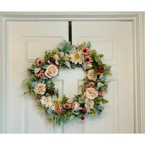Embrace the beauty of a blooming meadow with this exquisite cottage garden wreath, handcrafted with a variety of vibrant floral elements. The wreath features an inviting blend of dahlia, rose, eucalyptus, daisy, and other florals, each contributing its unique charm to this door decoration. Wrapped in an artificial form to ensure its everlasting allure, this piece is a testament to the timeless elegance of a well-curated arrangement. Perfect for celebrating Mother's Day or adorning your home with a touch of spring's grace, this multicolored wreath is a versatile addition to any space. Crafted from mixed materials, it promises to be a lasting decoration that captures the essence of a blooming garden. Whether hung on your door or displayed as a centerpiece, it brings the outdoors in and adds a warm, inviting atmosphere to your surroundings.