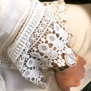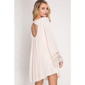 Beautiful, flowy, cream dress with lace detail. Open in the back to add a pop of sexy. SOLD OUT of small. Still have medium and large left.