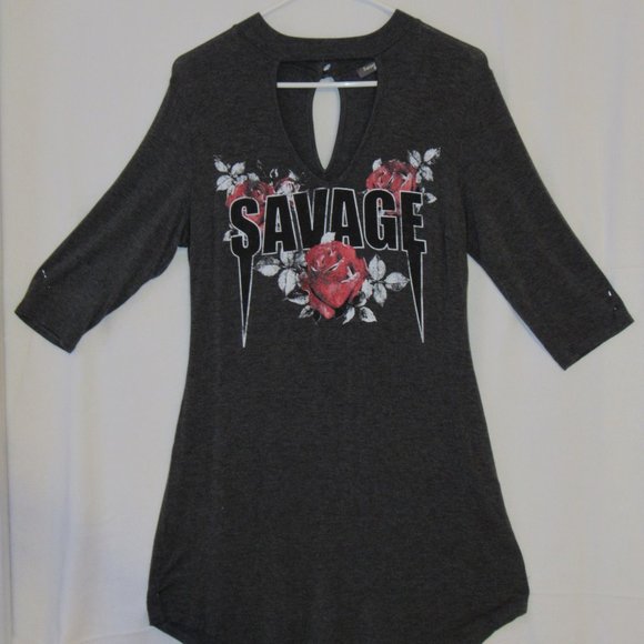 Sweet Daisy T-shirt Mini Dress Size XL Long Sleeve Savage Fangs Roses Keyhole