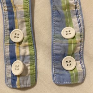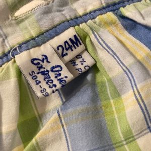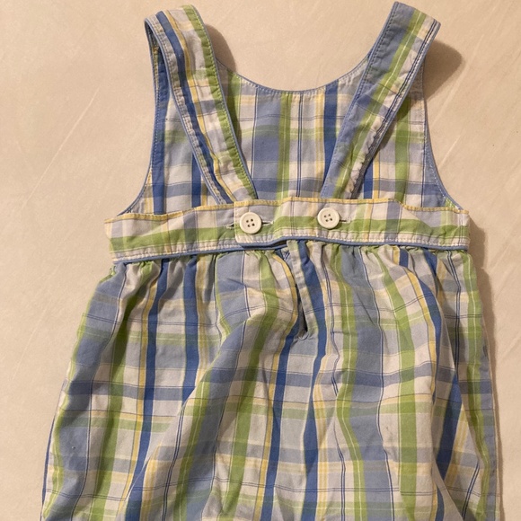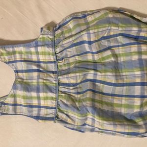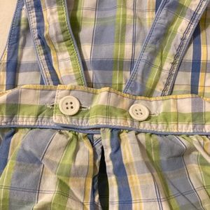 Adorable Romper- made in New Orleans, LA by a desirable local brand. Perfect for that casual Easter get together. Has adjustable straps and would be perfect with or without a blouse or tee underneath. Gorgeous Plaid with greens, blues, yellow and white. Very well made, great quality fabric, perfect stitching, with snaps at the bottom. Sweet, Simple, great for everything