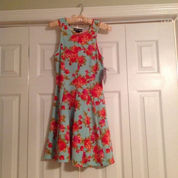 Get ready for Spring with this cute little floral knit dress. Form fitting from the waist up with a slight flare at the bottom. So adorable, but too short for me.