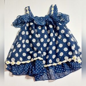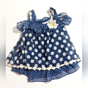 Sweet Floral Polka Dot Top 2T Blue White Daisy Layered Flowy