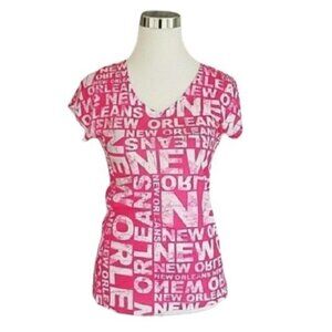 Sweet Gisele Pink New Orleans V-Neck Short Sleeve Graphic T-Shirt Size Medium