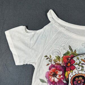 Sweet Gisele Womens Medium Sugar Skull Open Cold Shoulder SS Tee White Florida