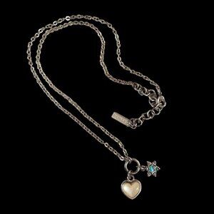 4. Napier heart and star pendants on a 16" chain, with 2" extra chain. Looks like the 3/8" Napier-marked heart has a mother-of-pearl stone and the star is aquamarine.