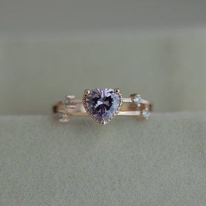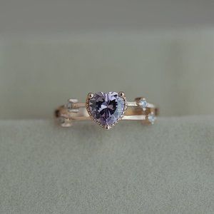 💝Sweet Heart Royal Purple Gemstone Zircon Double Layer Rings for WomenEVGG1474