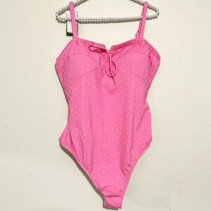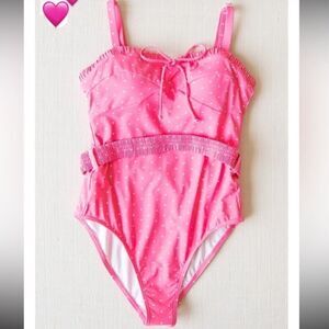 Sweet Honey Clothing Belted One Piece Pink Berry Spritz Pink Polkadot Swimsuit