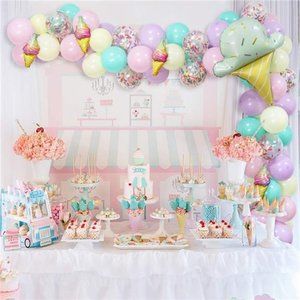 Sweet Ice Cream Party Balloon Arch Garland Pastel Macaron Popsicle Confetti Foil