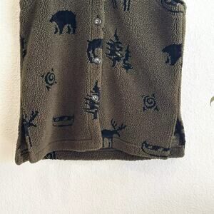 Sweet Jessie Womens Teddy Fleece Button Vest (No Size) Medium Outdoors Camping Description: Button Front, moose, bear, forest print, cozy and warm, camping, wilderness Condition: In Great Preowned Condition With No Flaws *No size or material tag, please refer to the flat lay measurements bellow Measurments Laying Flat Pit to pit 19.5 inches Length from shoulder to hemline 26 inches 2376-39