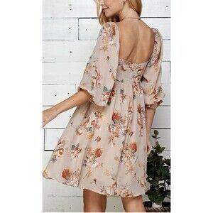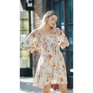 Sweet Lemon Fall Floral Babydoll Mini Dress Medium