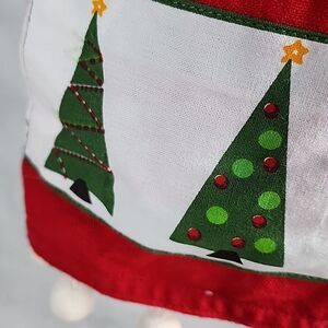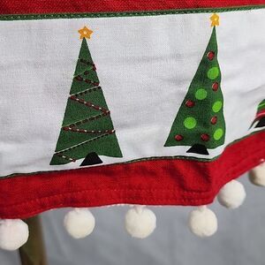 This sweet apron is decked out in zig zag, polka dots and striped Christmas Trees, with vibrant red and green accent. Super cute and festive for your little Sugar Cookie Baker! White snowball pom poms make this super festive and fun! 100% cotton