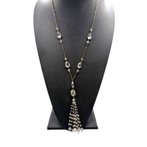 Sweet Lola Clear Crystal Faceted Beaded Rhinestone Station Tassels Chain Y Drop Neckline
