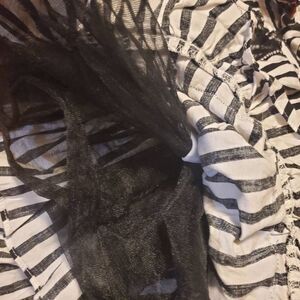 Chic mini dress with bold red and black stripes. Features playful bow accents. Perfect for a fun outing.