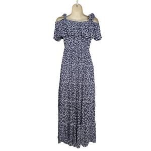 Sweet Lovely By Jen Maxi Dress SZ Small Blue Floral White Tiered