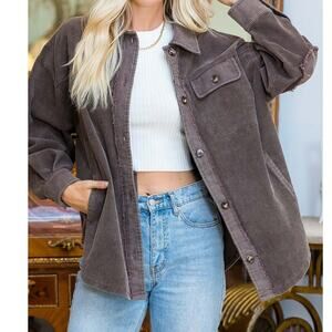 Sweet Lovely By Jen Mocha Corduroy Shacket S
